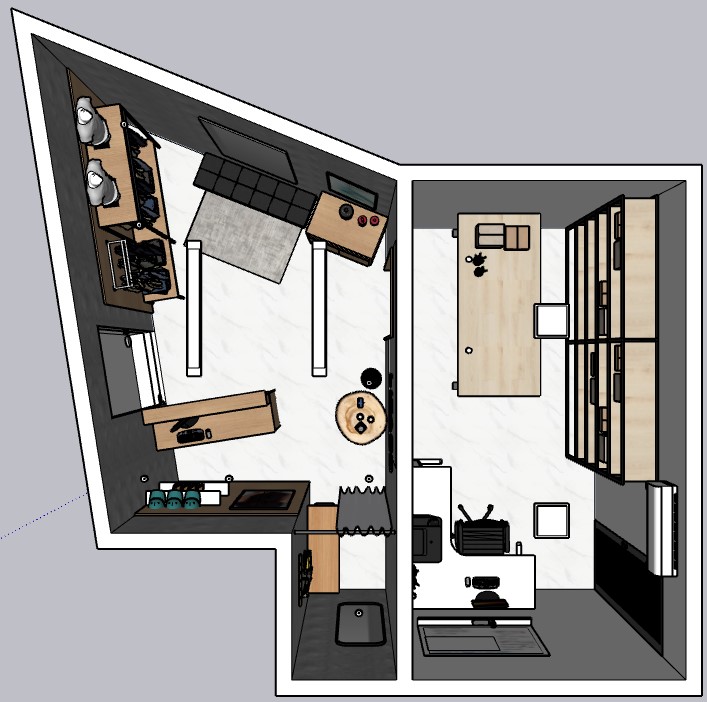 O segundo ambiente seria mais funcional, uma área de escritório e vendas online, com espaços para um pequeno estoque. Assim, esta Arqui-Ideia facilitou a vida do empreendedor, ao mesmo tempo que simbolizou a conquista de uma loja de um padrão bem mais alto!