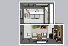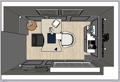 Ambientes de cuidado pessoal, como unhas e pés, exigem sensação de limpeza. Para isso, cores claras, porém com a possibilidade de ter muita personalidade e um pouco de luxo! Para receber os clientes, pensamos num canto de café, que é indispensável. Para o atendimento da podóloga, um bom espaço de circulação e móveis para guardar todos os equipamentos.
