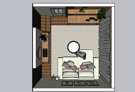 Essa Arqui-Ideia focou na renovação da decoração da sala de estar, sem a troca dos móveis, mas agregando elementos que valorizam o ambiente. Foram adicionados móveis fixos, como um armário elegante, painel para a TV e espelhos estrategicamente posicionados para ampliar a sensação de espaço.